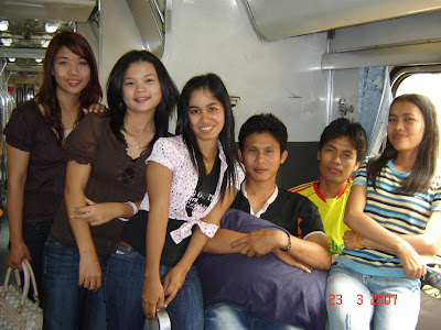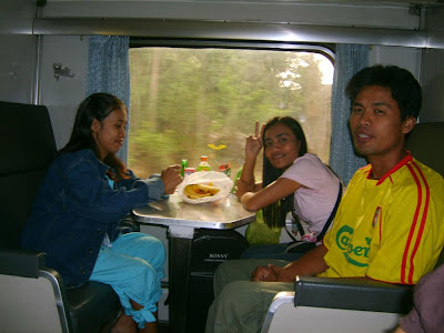 - เวลาประมาณบ่าย 2 กว่าๆ ก็ทยอยขึ้นสู่ขบวนรถด่วนระหว่างประเทศ ขบวนที่ 35 กรุงเทพ ปลายทาง บัตเตอร์เวอร์ธ ขบวนรถจะออกจาก บ่าย 2 โมง 45 นาที เป็นรถชั้นที่ 2 นั่งและนอนปรับอากาศ ชนิด 40 ที่รุ่นใหม่ ( บนท.ป. ) ราคาค่าตั๋ว เตียงบน 1,020 บาท และเตียงล่าง 1,110 บาท